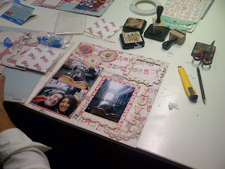 Hoje começou mais um curso de scrapbooking, este já clássico na 512 Ideias contou com 6 empenhadas alunas! O desafio para o layout de hoje era a utilização de 3 fotografias, uma grande e as outras mais pequenas. Os papéis de base eram da colecção Love Me da My Mind's Eye.